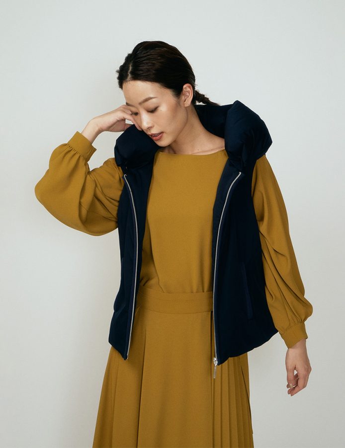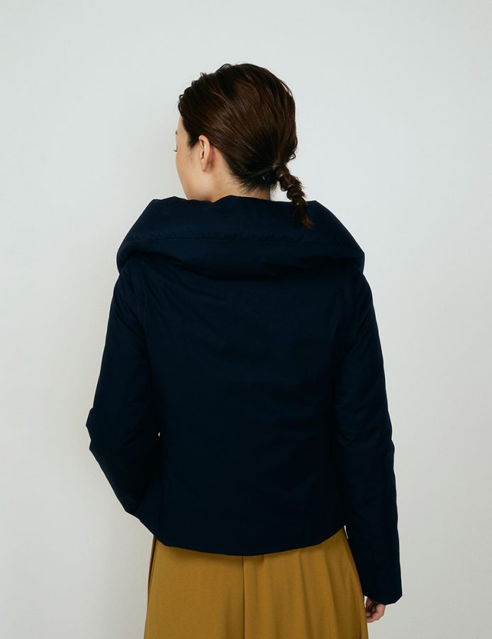 / Down in Fabric(生地の中にダウンが入った素材) 裏地にDown in Fabric(生地の中にダウンが入った素材)を使用しました。 特別な3Dプリンターの技術を用いて1枚の生地の中にダウンを入れた素材で、透湿感・吸湿発熱機能・ストレッチ性を 持ったハイブリッド素材です。裏地に使用する事で、着ぶくれや圧迫感を防ぎ、着心地の良さを追求した1枚です。 原産国:中国 素材感: 透け感:なし 裏地:あり 伸縮性:なし 光沢感:なし 生地の厚さ:普通 【モデルサイズ 身長163cm バスト79cm ウエスト59cm ヒップ83cm 着用サイズ38号】